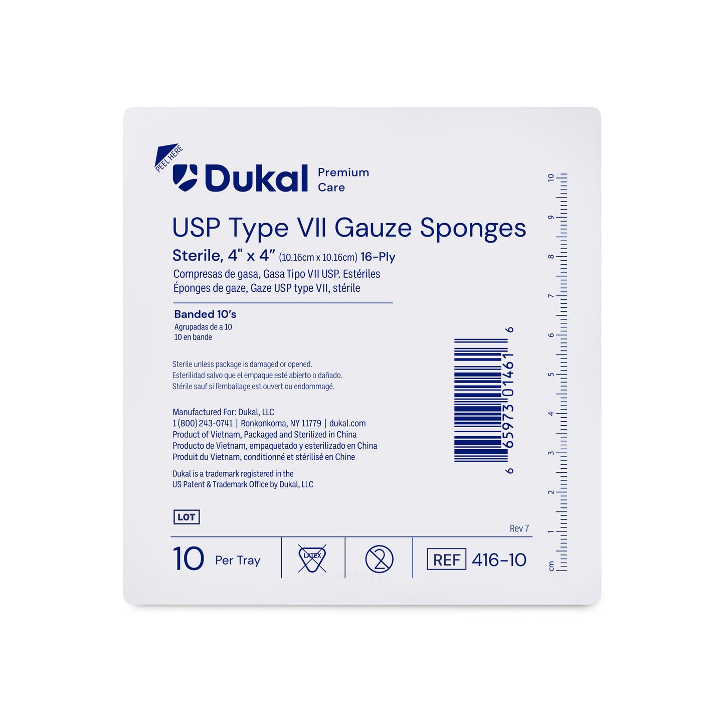 - USP Type VII gauze, 100% woven cotton