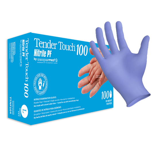 Vendor: Sempermed Tender Touch 100 Nitrile Examination Gloves Textured fingertips Tested for protection against Fentanyl Meets USP800 requirements for PPE compliance for chemotherapy Meets FDA CFR 21 Parts 170-199 requirements for food handling Powder-Free and Latex Free Thickness: Competes with 3-4 mil gloves Box=...Regular price From $9.99