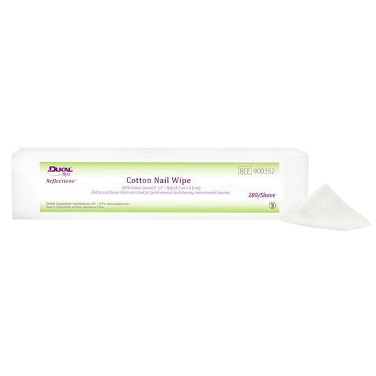 Vendor: Dukal Cotton Nail Wipes 2" x 2", 8-Ply 100% Cotton filled gauze Ideal for polish removal and cleaning instruments & brushes Sleeve= 200 wipes Case= 5000 wipes (25 sleeves of 200 wipes)Regular price From $4.99
