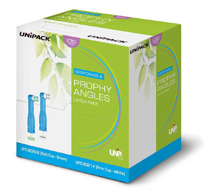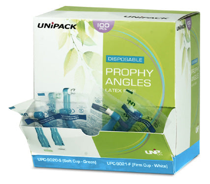 Vendor: Dukal Disposable Prophy Angles Precision gears for reduced vibration and fatigue Ribbed housing for increased maneuverability Smooth running and no cup dropping Not made with natural rubber latex Convenient 100-piece countertop dispenser box Available with firm or soft cups Non-sterile...Regular price $89.99